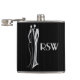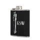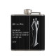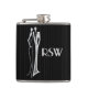 Flask com design de estilo Art Deco silencioso de um casal elegante em trajes formais sobre um fundo riscado preto + campos de texto personalizados para monograma, data e mensagem pessoal. presente de excelente para a sua festa de casamento!