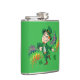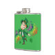 Flask com uma Ilustração de um belo e feliz dublê e duende dançante, ele está vestindo um terno verde e um chapéu de cima e está rodeado por salpicos de cor arco-íris Um design perfeito para celebrar o Dia de São Patrick, desenhado por Radka2D
