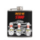 Três boliches zangadas de pé, juntas, com uma citação engraçada