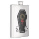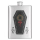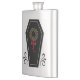 Para o seu decoro de feriado gótico, este vampiro temido design tem um caixão com uma coroa de Natal festiva nele. Esquema de cor preto e vermelho, folhas holly.