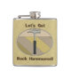 Este legal frasco geológico de quadril apresenta a frase "Vamos Get Rock Hammered!" com um logótipo que inclui um desenho de desenho de um martelo de rocha sobre um fundo angular de não conformidade. O balão propriamente dito é castanho, com um martelo de rocha repetitivo, esmaecido e castanho.