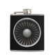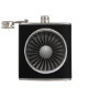 Vista frontal de um moderno motor de turbina a jato mostrando as pás das ventoinhas e o motor de prata brilhante que se encobre. Os motores turbofólicos são normalmente utilizados em jato comercial para o seu elevado impulso e eficiência energética, juntamente com um ruído mais baixo do que os motores turbo-jato.
