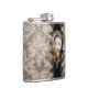 Elegante design formal em preto e branco com quadro ornamentado prateado, espaço para personalização, aglomerado de rosas de safra em rosa e burgandy com fita, chave e ornamento joalhado.