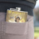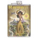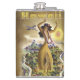 Um vinil encantador do vintage envolveu a garrafa que caracteriza um poster de viagens das linhas de ar unidas de um hula que dança a mulher havaiana.