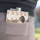 Renderização digital em 3D de uma bela jovem vintage sentada num carro no fundo de uma cidade de verão, coloração sépia