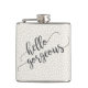 Um design capricho divertido em um padrão de confete de cinza de tendências com o texto moderno de script "Olá, Gorgeous".