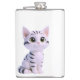 Soft Pastel White Tabby Kitten, Kawaii Porcelain-Style Cat Illustration on Bright White