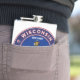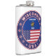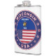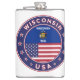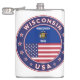 Crachá de Wisconsin com bandeira de Wisconsin e bandeira dos EUA, cores, forma arredondada. Emblema de Wisconsin. Selo de Wisconsin. Coleção dos Estados Unidos. Milwaukee, Madison, Green Bay, Kenosha, Racine, Appleton, Waukesha, Eau Claire, Oshkosh, Janesville