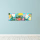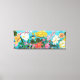 Uma pintura acrílica original de Kristina Anderson. Pequenas criaturas e flores coloridas em um fundo leve e rico impresso na canvas.