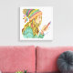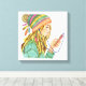 Canvas de uma jovem vestindo um chapéu e ouvindo música.