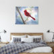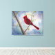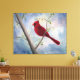 De uma pintura original mestiça de Brenda Thour, de um cardeal macho vermelho sentado em um galho de árvore nua com um céu abstrato azul e rosa. Copyright de Brenda Thour 2005.