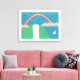 Esta canvas foi desenhada com uma pintura de papel que representa um arco-íris sobre uma cascata.