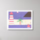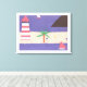 Esta canvas é uma arte de papel de um farol vermelho e branco em uma faixa de terra cercada por água azul e veleiros.