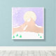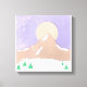 Esta canvas foi desenhada com uma cena de montanha de neve e um céu lavanda.