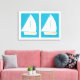 Canvas com embarcações à vela num fundo turquesa