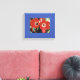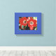 Esta canvas mostra minha foto de duas tulipas vermelhas brilhantes, uma com gota de chuva!