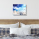 A arte canvas é mostrada com uma impressão fotográfica de uma bela cena de montanha de inverno. Imagem do stock