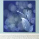 Azul é a cor - fundo bokeh com folhas prateadas e azuis que têm gotas de orvalho ainda sobre elas a partir da névoa da noite - Dê uma olhada nos Travesseiros americanos decoradores MoJo para amarrar no tema no seu quarto ou toca. Perfeito para escritório, casa ou lobby. Pode ser facilmente dimensionado para baixo -