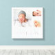 Adicione três de suas fotos favoritas de recém-nascidos para criar uma bela e única colagem de fotos, impressão de canvas de arte. Personalize a design com o nome do seu bebê monograma e aniversário, estatísticas de nascimento ou outro texto personalizado. Clique em Personalizar para mover fotos ou alterar fontes e cores de texto para criar uma design única. presente de excelente para a família e amigos!