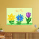 Bonito jardim floral com flor ouro amarela, flor azul amarela e tulipa púrpura na grama verde. Olá está escrito em vermelho. Manter texto, personalizá-lo ou excluir texto. Uma canvas excelente para a decoração da casa ou para as paredes do escritório para trazer os meses de primavera e verão para o ano todo para quem ama flores e natureza. Trabalho de arte de Gráfico Original por TamiraZDesign. www.zazzle.com/tamirazdesigns