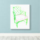 Esta é uma tela impressa de uma pintura original de guache/tinta da artista Anne Harwell. Possui uma cadeira verde de bambu, estilo Palm Beach, típica, completa com almofada de framboesa.