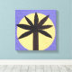 Uma silhueta de palmetto de arte em papel em frente a uma lua de cheio em uma canvas.