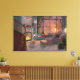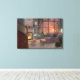 Traga o calor de uma noite perfeita para sua casa com esta canvas. O pôr do sol do ouro preenche o espaço com calor de pêssego, da escada carpetada de marrom até o chão de madeira e a delicada gaiola de aves pela janela. É uma peça que parece entrar em uma história, acrescentando conforto e encanto a qualquer parede que ela agarra.