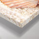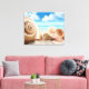 A arte da canvas é mostrada com uma impressão fotográfica de uma bela praia oceânica e cena de conchas. Imagem do stock