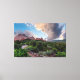 Impressão de Fine Art Canvas apresentando uma maravilhosa bela manhã no amanhecer no Jardim dos Deuses do Colorado Primaveras, Colorado, Estados Unidos. As formações rochosas que vocês veem aqui são chamadas de Gigante Adormecido. Procurando mais produtos? Visite minha loja: http://www.zazzle.com/timelessmomentsphtgy Foto tirada por Jennifer White com Fotografia Moments Eterno. Todas as imagens são protegidas por direitos autorais.