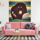 Gaveta de molho e listras amarelas, verdes, azuis. Decoração de arte de parede fresca.