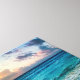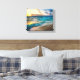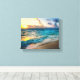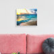 A arte canvas é mostrada com uma impressão fotográfica de uma bela cena de praia oceânica. Imagem do stock