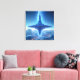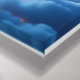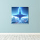 This sci-fi Canvas Print depicts a blue UFO above the cloudline, with a large planet observable in the distance.