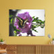 Borboleta de cauda engolida no hibisco rosa floresce. A luz do sol toca pétalas de flores e asas de insetos. O fundo é difuso com sombra preta à esquerda.
