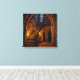 This canvas print depicts a castle stairway illuminated by candlelight and torches.