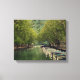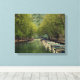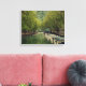 Uma fotografia lindamente texturizada da cobertura das árvores que pendura sobre o Canal de Vassé em Annecy, França. A Annecy situa-se na parte Haute-Savoie da região Ródano-Alpes, em França. A ponte é a distância é a ponte romântica dos amantes ou le pont des amours.