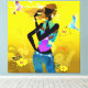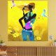 Traga a década de 1970 de volta com esta abstrato silhueta menina com flores brilhantes de beija-flores e rodelas Perfeitas para escritório, casa ou lobby. Pode ser facilmente dimensionado para baixo -