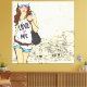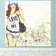Garota urbana andando em frente a uma rua puxada pela mão, com seu tanque no topo, shorts e bolsa mensageiro. Perfeito para escritório, casa ou lobby. Pode ser facilmente dimensionado para baixo -