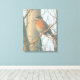Robin em membros nus da árvore de inverno. O peito vermelho de Bird se destaca contra a latido da cinza do tronco da árvore.