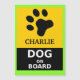 O CÃO A BORDO com o ímã interno conhecido do sinal exterior do cão ajudará seu cão em caso de uma emergência. Se seu cão é fechado em seu veículo, e tem uma crise de saúde, ou você está envolvido em um acidente, este ímã alertará pessoas que há um animal para dentro na necessidade. É feito para o uso interno ou exterior e poderia significar a diferença entre a vida e a morte para seu melhor amigo. Personalize-o facilmente e adicione-o para possuir o nome do cão assim que as pessoas podem chamá-lo por seu próprio nome e consolá-lo. Este CÃO A BORDO DO ÍMÃ é uma obrigação para cada proprietário do animal de estimação, faz um grande presente para amantes do animal de estimação, e é parte de minha COLEÇÃO da SEGURANÇA do CÃO em minha loja. Esta coleção inteira veio sobre quando eu vi estatísticas em cães feridos e perdidos e como eu poderia ajudar a fazer coisas melhores e a lhes receber de volta a preferencialmente home do que terminando acima em um abrigo do matar.