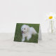 cão branco fofo e fofo num cartão de nota