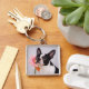 Este chaveiro de prata com uma imagem impressionante do cão de Boston Terrier dentro de uma flor cor-de-rosa faz um presente bonito para o amante do cão de Boston Terrier. Você será encantado por seu detalhe bonito.