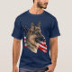 O cão de german shepherd nobre headstudy na frente de uma bandeira americana de ondulação na camisa de sua escolha. Para adicionar a imagem ao clique traseiro Customize>image>copy>paste no verso.