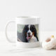 Cão de montanha de Bernese com a caneca de café