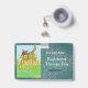 Este crachá altamente visível prende-se facilmente à sua roupa durante uma visita. Mostra que o seu cão, com a foto que você adiciona, está registado na organização de cães de terapia que você especificar. Explica que você está numa instalação com permissão e não está a afirmar que o seu cão é um cão de serviço. Descreve os serviços que o seu cão presta. Este produto oferece excelente visibilidade sem interferir com o acariciar ou tratar o cão. É menos provável que seja confundido com uma falsa representação de cão de serviço, como pode acontecer com um colete, xairel ou casaco no cão.