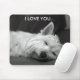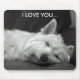 Este é um mousepad que seja perfeito para esse que você ama. Mostra um cão bonito de Westie (montanhas ocidentais Terrier) rapidamente adormecido, com as palavras "EU TE AMO…" acima da imagem, no centro no branco. Aperfeiçoe para seus namorados.