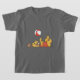 Um filhote de cachorro marrom feliz que veste uma camisa do vermelho joga com uma bola de praia vermelha e branca neste cão bonito que joga com t-shirt, caneca, mousepad, bolsas, e mais da bola!