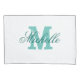 Pessoalizado elegante azul aqua / turquesa fronha com monograma do nome. Capa de almofada fofa para quarto com letra inicial de tipografia vintage e texto com letra estilosa. Decoração de casa sofisticada para casal recém-casado, marido e esposa, recém-casados, lua de mel, noiva e noivo, quarto de crianças. Design moderno em cores personalizáveis. Ideia de presente luxuoso para casamento. Decoração de cama chic com monograma para ele e ela. Adicione o sobrenome personalizado dele e dela, nome da família, sobrenome, etc. Presente fofo para casamento, chá de noiva, noivado, aniversário para homens e mulheres que vivem juntos.