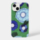 Flores azuis com fundo verde