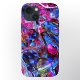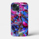 Esta capa de telefone apresenta um design em forma de mármore girado em magenta, azul-céu, azul real, rosa-quente, roxo e salpicos de amarelo. O padrão me lembra de agato, fractais e mármore.