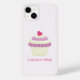 Uma capa de telefone rosa com um cupcake pastel doce e um texto personalizado. Uma boa ideia para um chef de pastelaria, um negócio de bolo ou apenas para uma pessoa que ama bolos de cozinhar!